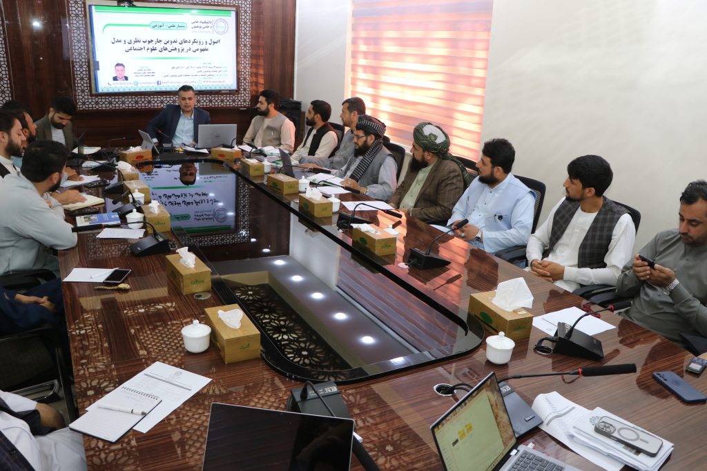 3 سنبله 1404با توجه به اهمیت بنیانهای نظری و روششناسی تحقیق در پیشبرد پژوهشهای علمی و کیفیّت بخشی به تولیدات علمى، سمیناری با عنوان "اصول و رویکردهای تدوین چارچوب نظری و مدل مفهومی در علوم اجتماعی" ویژه اعضای محترم هیئت علمی پوهنتون جامی، بتاریخ 03/06/1404 در اتاق جلسات بزنس هاب توسعه پایدار پوهنتون جامی برگزار گردید. سمینار با تلاوت آیات کلام الله مجید توسط پوهنیار محمد منصور محب عضو هیئت علمی پوهنحی شرعیات افتاح گردید، در آغاز این برنامه، محترم استاد عزیز الله صامت، معاون پوهنحی اقتصاد، ضمن خوشآمدگویی به حضار، بر نقش زیربنایی چارچوب نظری در هدایت مسیر تحقیق، تأکید نمود و برگزاری چنین سمینارهایی را گامی ضروری در جهت تقویت پژوهشهای بنیادین و کاربردی دانست. سپس دکتر بصیر احمد حصین، معاون تحقیقات علمی پوهنتون، به بیان چالشهای رایج پژوهشگران در تدوین مدلهای مفهومی پرداختند و راهکارهای عملی برای غلبه بر این چالشها و انتخاب نظریههای متناسب با مسئله تحقیق را ارائه نمودند. بخش اصلی برنامه با ارائه مفصّل دکتر علی صادقی، عضو هیئت علمی برنامه ماستری اداره تجارت، ادامه یافت. ایشان به عنوان ارائهدهنده اصلی، به تشریح گامبهگام فرآیند تدوین چارچوب نظری، معرفی رویکردهای مختلف استخراج مدل مفهومی از ادبیات موضوع، و چگونگی ایجاد پیوند منطقی بین مسئله تحقیق، پرسشها، نظریه و مدل پرداختند. همچنین انواع مدلهای مفهومی و نحوه نمایش گرافیکی روابط بین متغیرها مورد بحث و بررسی قرار گرفت. در پایان برنامه، بخش پرسش و پاسخ با حضور فعال اساتید محترم برگزار شد که به غنای مباحث افزود. در خاتمه، دکتر عتیق الله رحیمی، معاون علمی پوهنتون جامی، با جمعبندی مطالب ارائه شده، از زحمات برگزارکنندگان و سخنرانان تقدیر به عمل آورده و بر عزم دانشگاه برای برگزاری چنین کارگاهها و سمینارهای تخصصی در راستای توانمندسازی هیئت علمی و ارتقای کیفیّت تحقیقات تأکید نمودند.